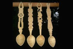Privite dintr-un alt punct de vedere, lingurile caracterizeaza diverse trasaturi umane sau momente din viata omului. La nivelul superior al casei se afla lingurile pentru barbati cu femei cicalitoare, in fapt, niste linguri ce au atasate mai multe inele din lemn. in conceptia artistului care le-a realizat, barbatul suna din lingura agitand-o la nevasta cicalitoare, pentru ca aceasta sa-l lase sa manance linistit. In apropierea acestora, pe acelasi perete, se afla lingurile calicilor si ale avarilor, linguri mai plate cu care se poate lua foarte putina mancare.